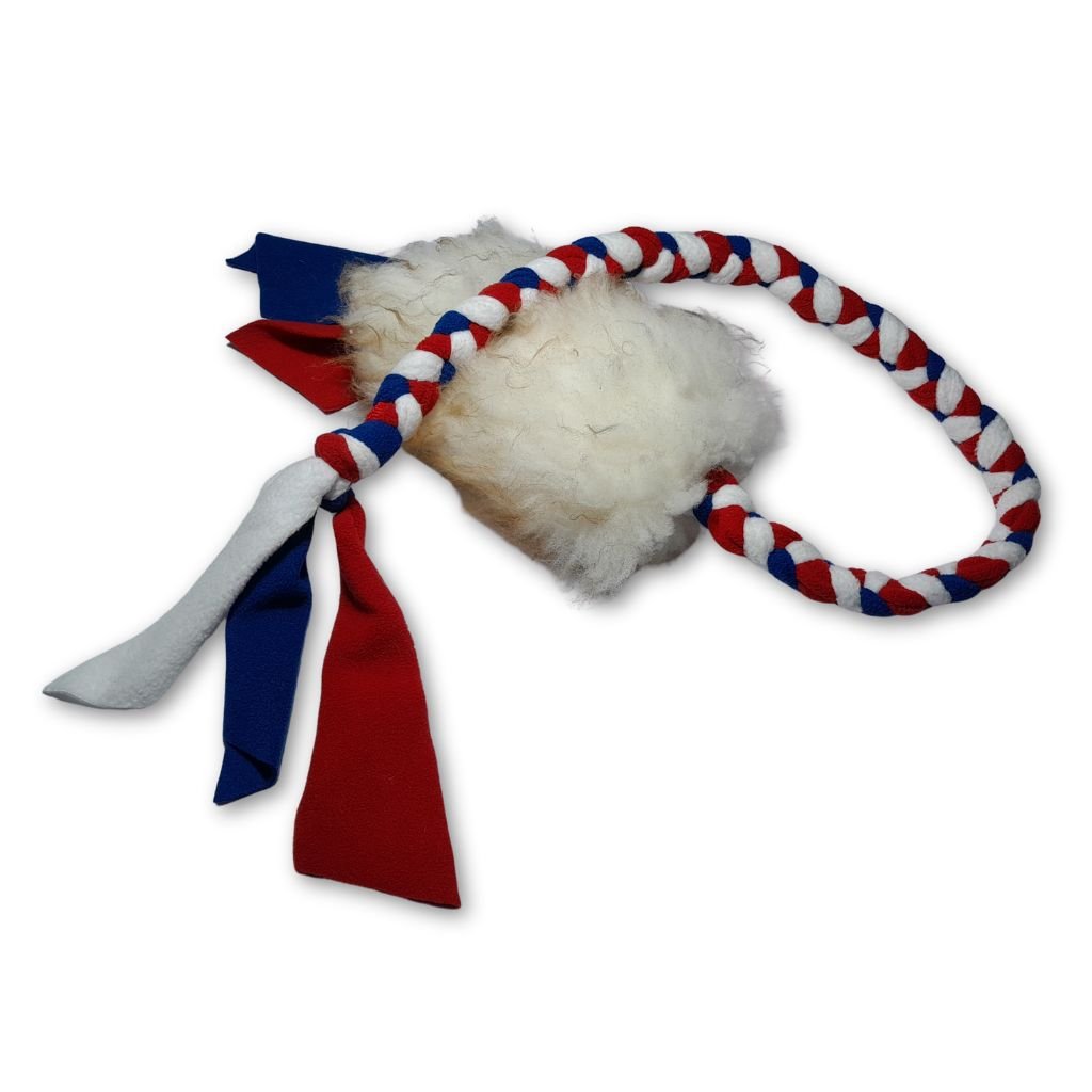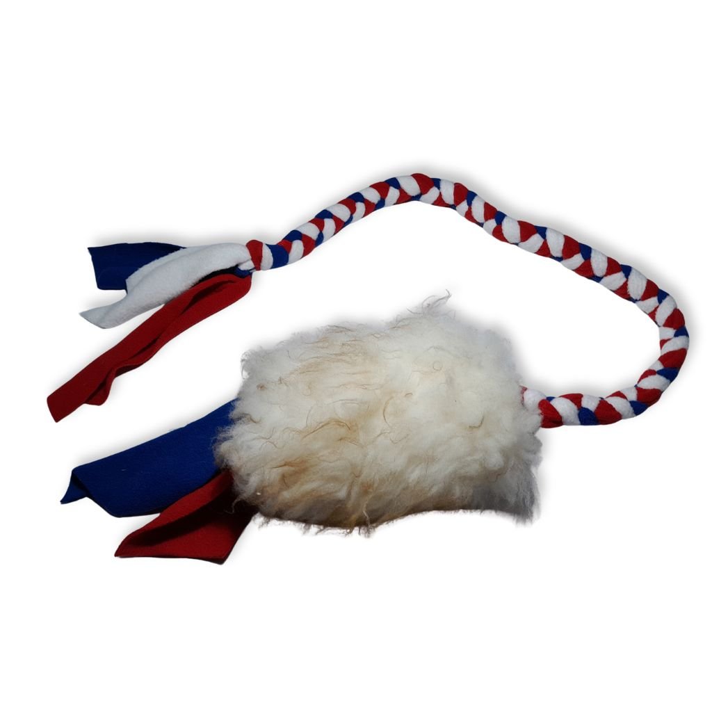 Hračka pro psy s ovčí kožešinou a zapleteným fleecem. Hračka je skladná, tzn. vhodná pro každý trénink, kde potřebujete pejska navnadit a namotivovat. Celková délka 127 cm.