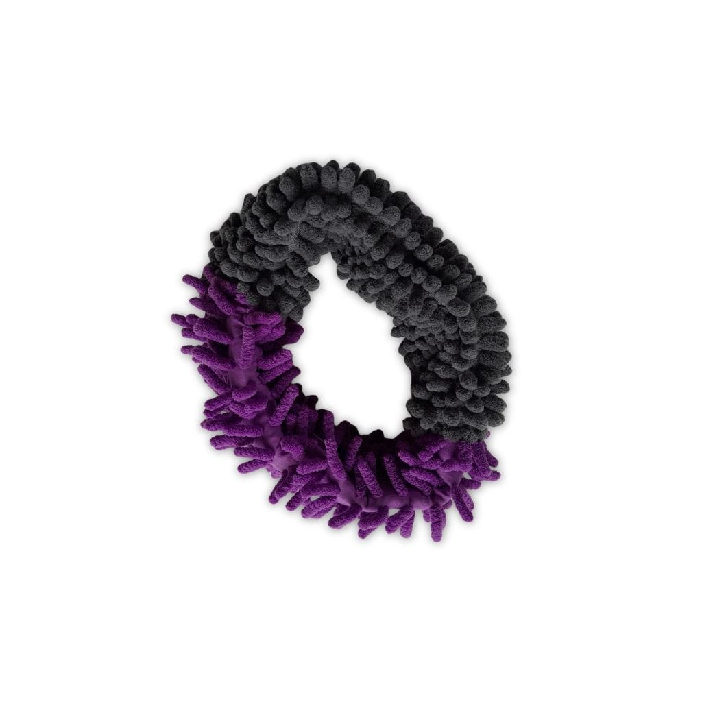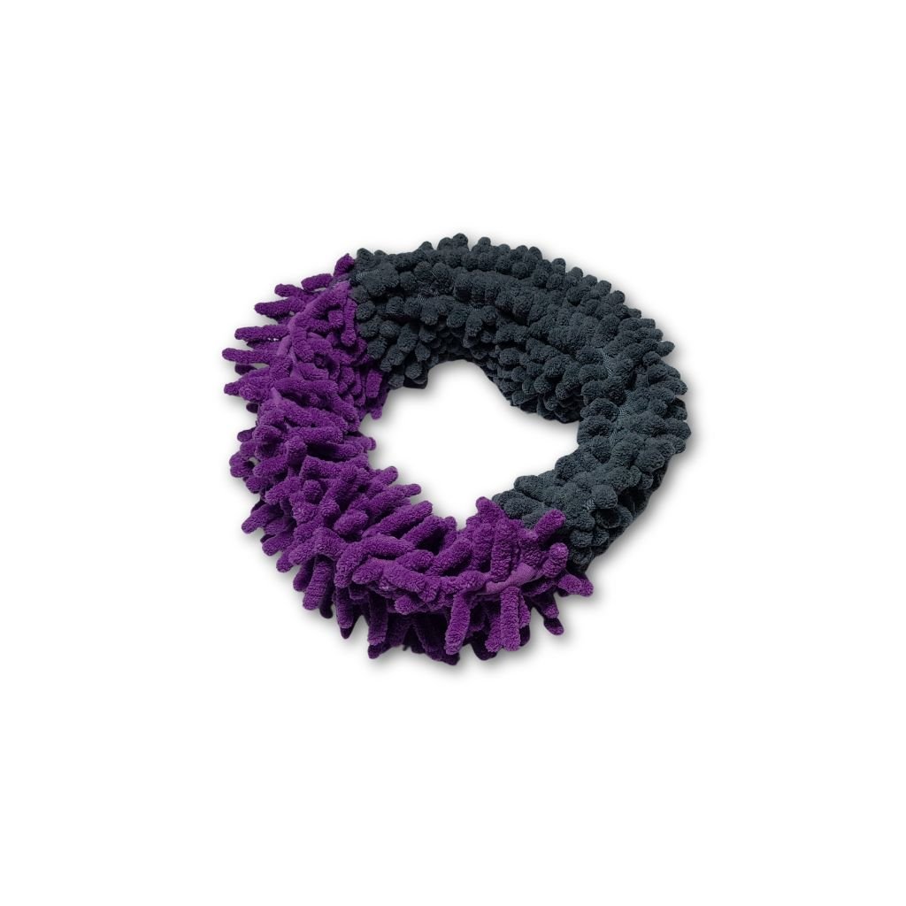 Mopové fialovo-šedé přetahovadlo ve tvaru kruhu. Stylový kroužek je vytvořený z mopu pro malé i velké pejsky, vše je kvalitně podšité nylonovým popruhem a pevnou látkou. Průměr 18 cm.